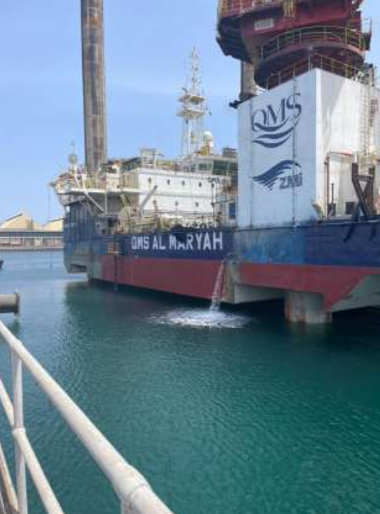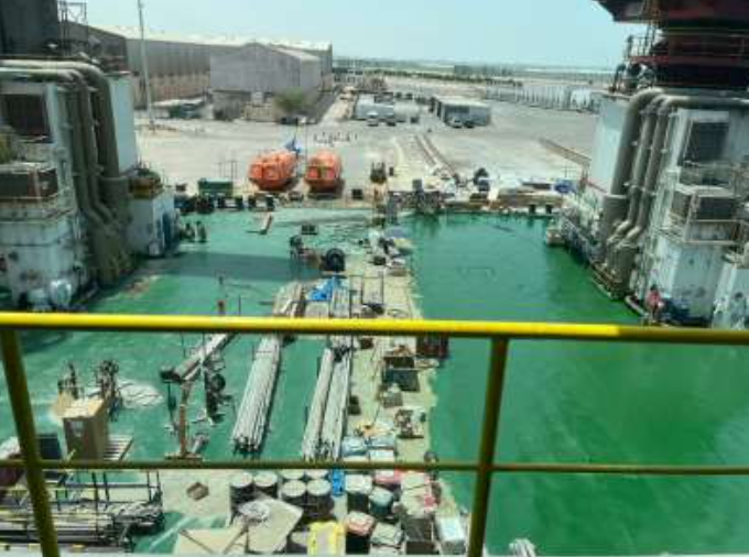 The blasting and painting process for the outer shell and deck of a jack-up barge is