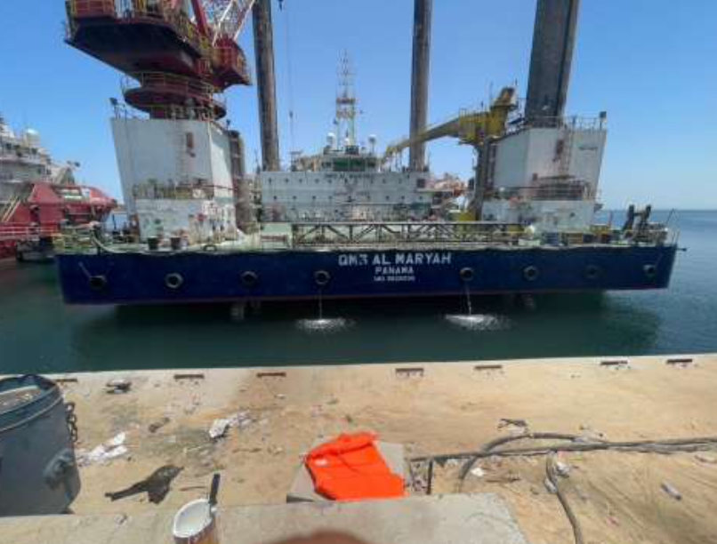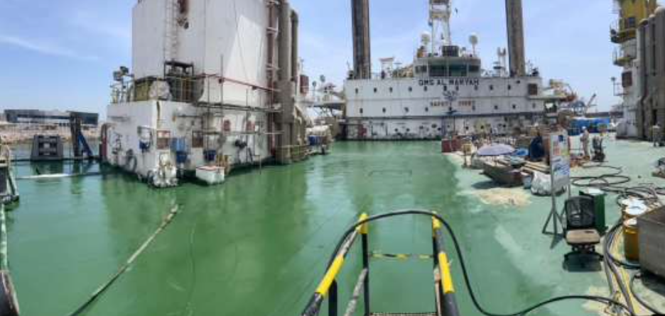 The blasting and painting process for the outer shell and deck of a jack-up barge is